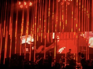 Gecen sene Rock Werchter konserindekine yakindi sahne. Ama biraz daha iyiydi. Yine Tibet bayragi vardi piyanonun onunde ve yine sahnenin tepesinden asagiya dogru inen florasan irisi seyler vardi (ki ben bunlari gokyuzunden gelen yagmur damlalari olarak goruyorum, in rainbows'dan serbest cagirisim, bilmem ne kadar tutarli).